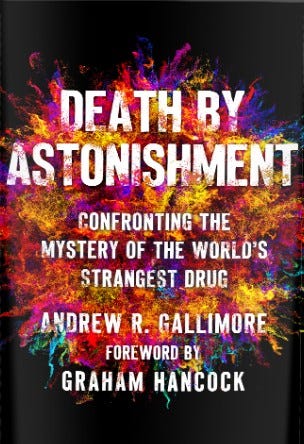 I first ready Andrew Gallimore’s book, Death by Astonishment, last year. I’ve been recommending it ever since. It’s one of those books that wants to be respectable but also radical. That is not an easy task with a subject inherently slippery. It succeeds, which is more than you can say for most psychedelic writing.